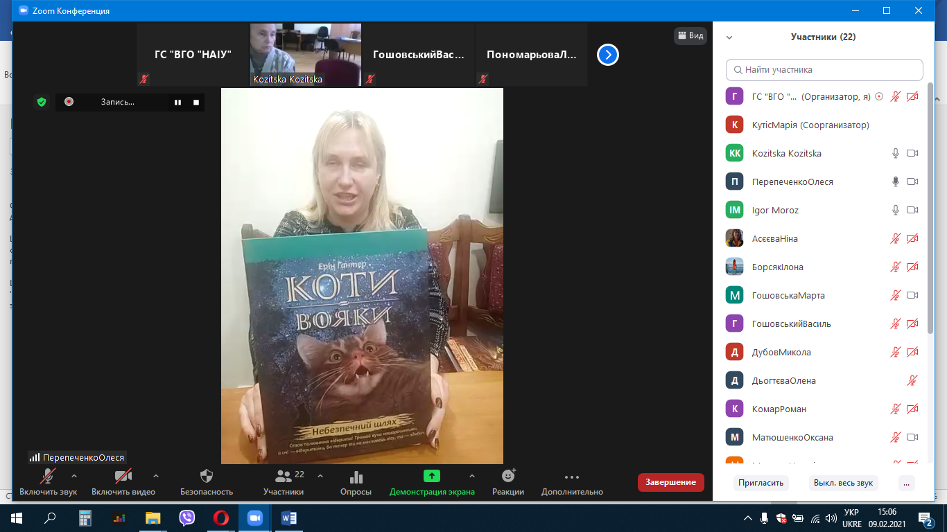 Громадська спілка «Всеукраїнська ліга організацій осіб з інвалідністю по зору «Сучасний погляд» в рамках реалізації проєкту «Інклюзивний навчально-розвиваючий захід online «Читаймо разом!» провела 23 та 25 грудня 2020 року читацькі онлайн-клубидля дітей молодшого, середнього та старшого шкільного віку. На цихзустрічах їх учасники обговорювали світовий бестселлер «Коти-вояки». Разом з нашими чарівними ведучими діти знайомилися з героями твору, відповідали на різноманітні питання, висловлювали свої думки щодо сюжету та дій головних героїв.